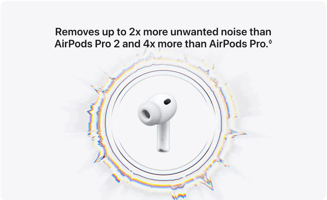 - Up to 2x More Active Noise Cancellation (for AirPods Pro 3): Up to 2x more Active Noise Cancellation compared with AirPods Pro 2 when tested in accordance with IEC 60268‑24.
