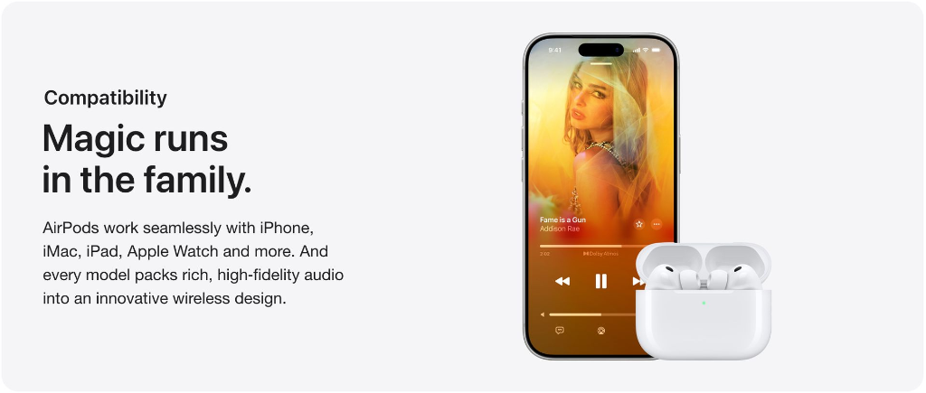 - Audio Sharing: Requires a compatible Apple device running the latest operating system software.