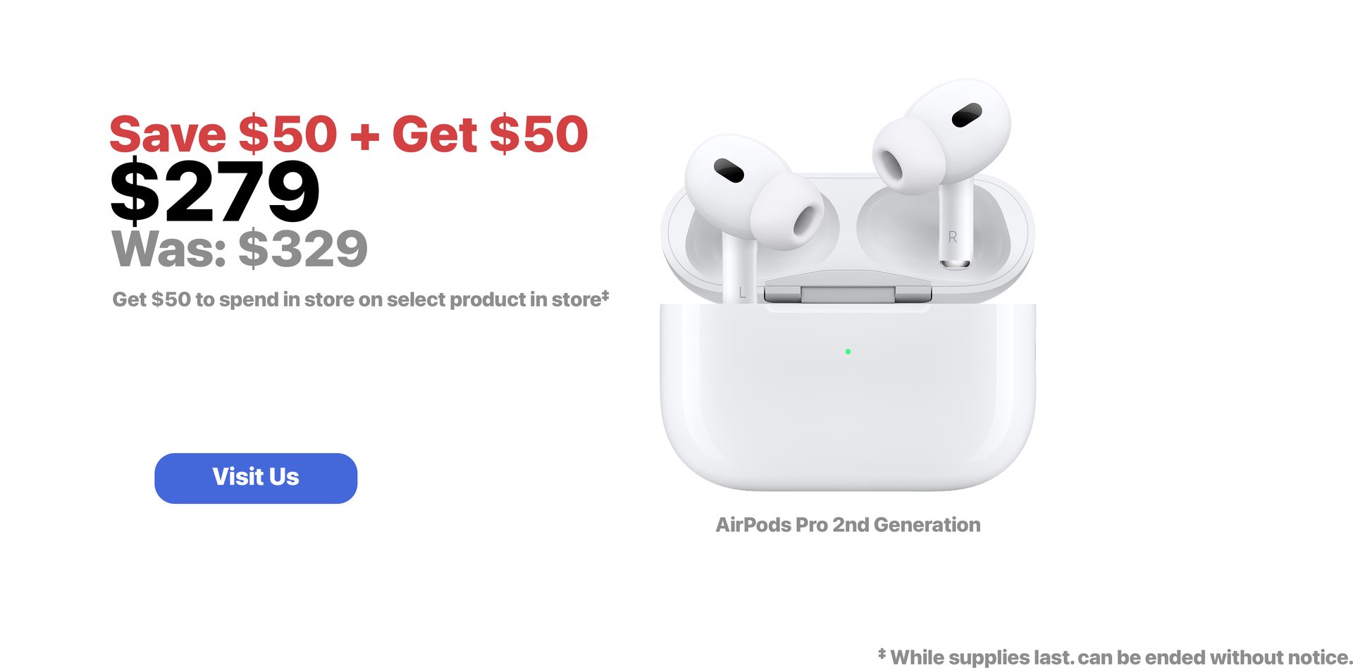 The AirPods Pro 2 deliver rich sound, excellent noise cancellation, and a smooth experience across all your Apple devices. With savings of $50 off, they’re a great value for anyone looking to upgrade their earbuds. Whether you’re commuting, working out, or just want better audio for your day-to-day, AirPods Pro 2 offer premium performance at a friendlier price.