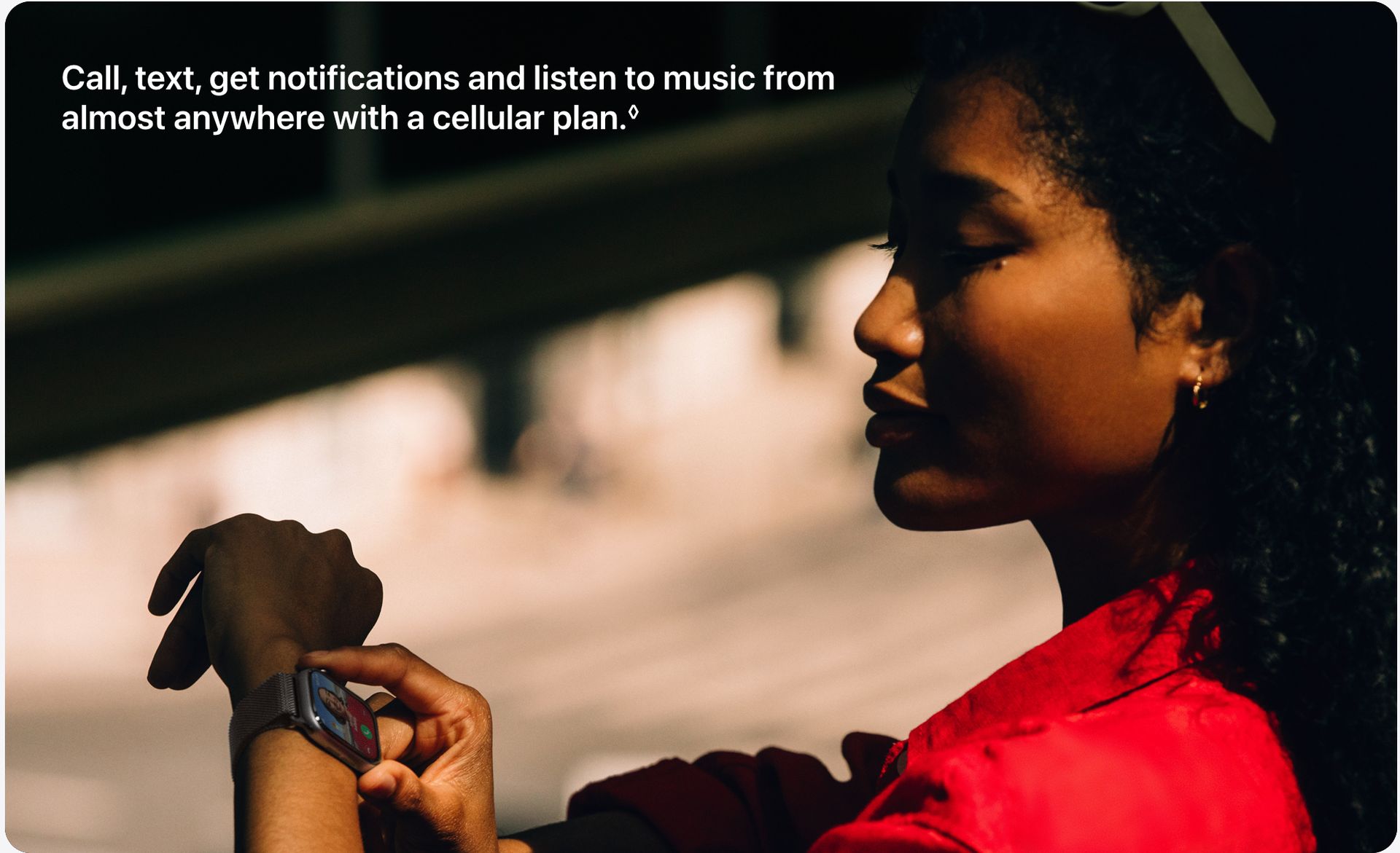 Cellular and Wireless: Wireless service plan required for cellular service. Contact your service provider for more details. Connection may vary based on network availability. Check apple.com/ca/watch/cellular for participating wireless carriers and eligibility. See support.apple.com/en-ca/119601 for additional setup instructions.
