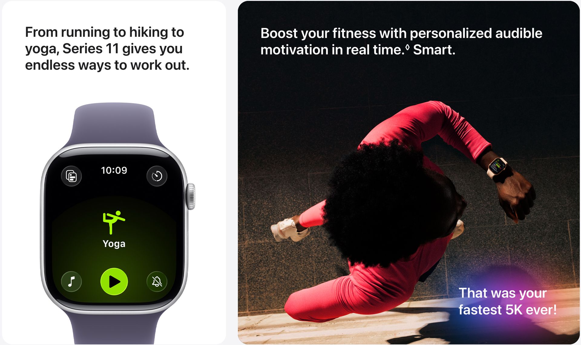 Workout Buddy: Requires an Apple Intelligence–enabled iPhone nearby and Bluetooth headphones with device and Siri language set to English. Apple Intelligence is available in beta. Some features may not be available in all regions or languages. For feature and language availability and system requirements, see support.apple.com/en-ca/121115.