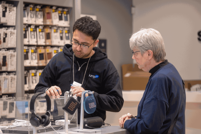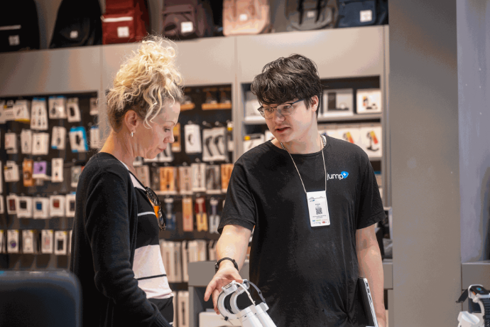 “Le personnel de Jump est amical, serviable et compétent. Ils se plient en quatre pour offrir un service client exceptionnel et une assistance technique. Même pendant les périodes chargées avec des files d'attente, ils restent calmes et courtois. Malgré mon expertise limitée, ils me coachent patiemment sur la façon de naviguer sur mon iPhone.”