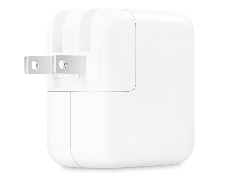 L'adaptateur secteur double port USB‑C de 35W vous permet de charger deux appareils en même temps, que vous soyez à la maison, au bureau ou en déplacement. Apple recommande de l'utiliser avec le MacBook Air. Vous pouvez également l'utiliser avec l'iPhone, l'iPad, l'Apple Watch et les AirPods.