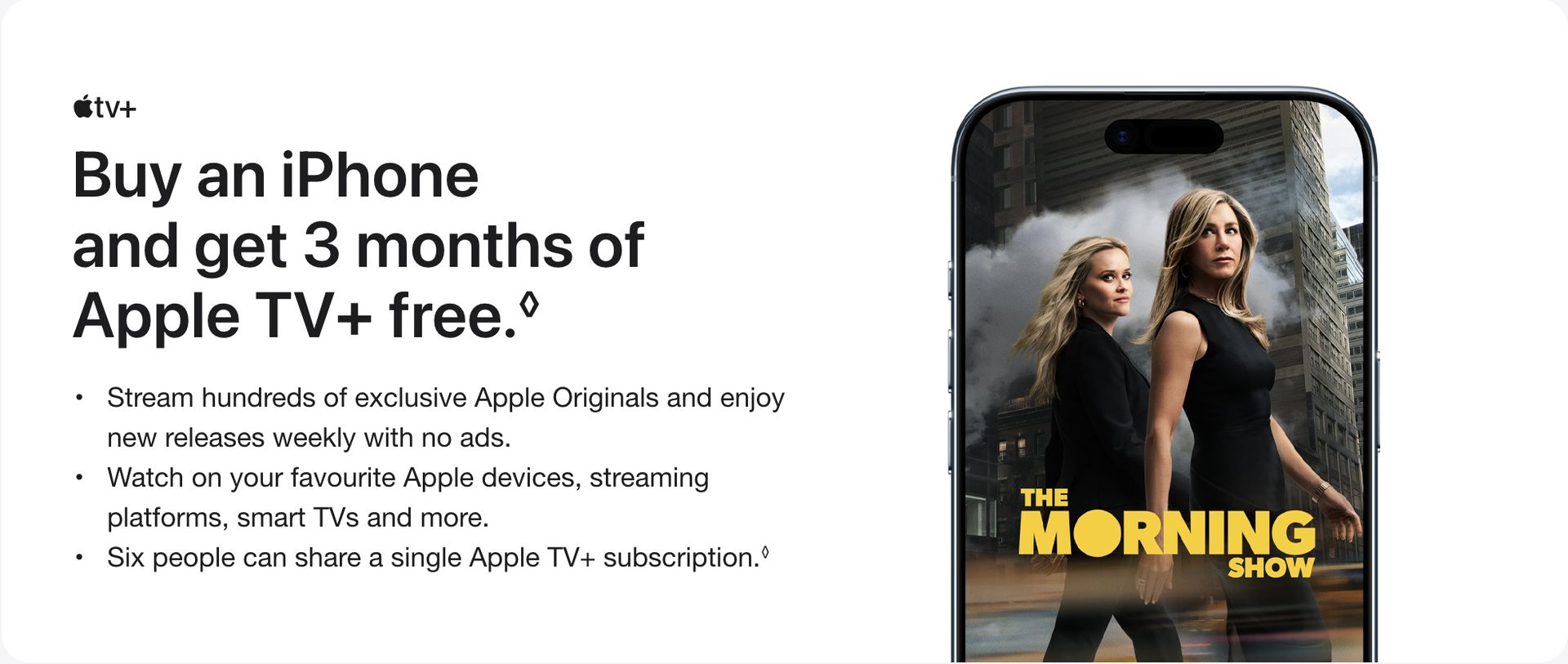 Apple TV+ Offer: New and qualified returning subscribers only. $14.99/month after free trial. Only one offer per Apple Account and only one offer per family if you’re part of a Family Sharing group, regardless of the number of devices you or your family purchase. This offer is not available if you or your family have previously accepted an Apple TV+ 3 months free or 1 year free offer. Offer good for three months after eligible device activation. Plan automatically renews until cancelled. Restrictions and other terms apply. One subscription per Family Sharing group.