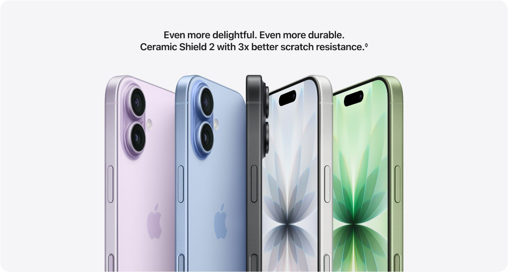 Scratch Resistance: 3x better scratch resistance of Ceramic Shield 2 is compared with previous‑generation iPhone.